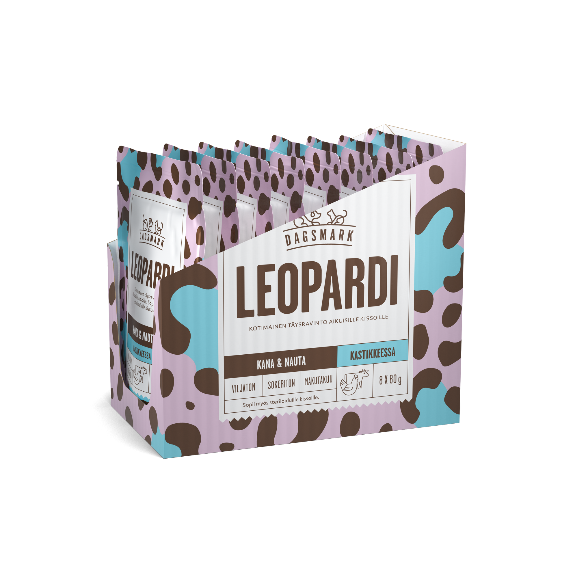 Dagsmark LEOPARDI kana-nauta kastikkeessa -märkäruoka kissalle 8 X 80 g multipack