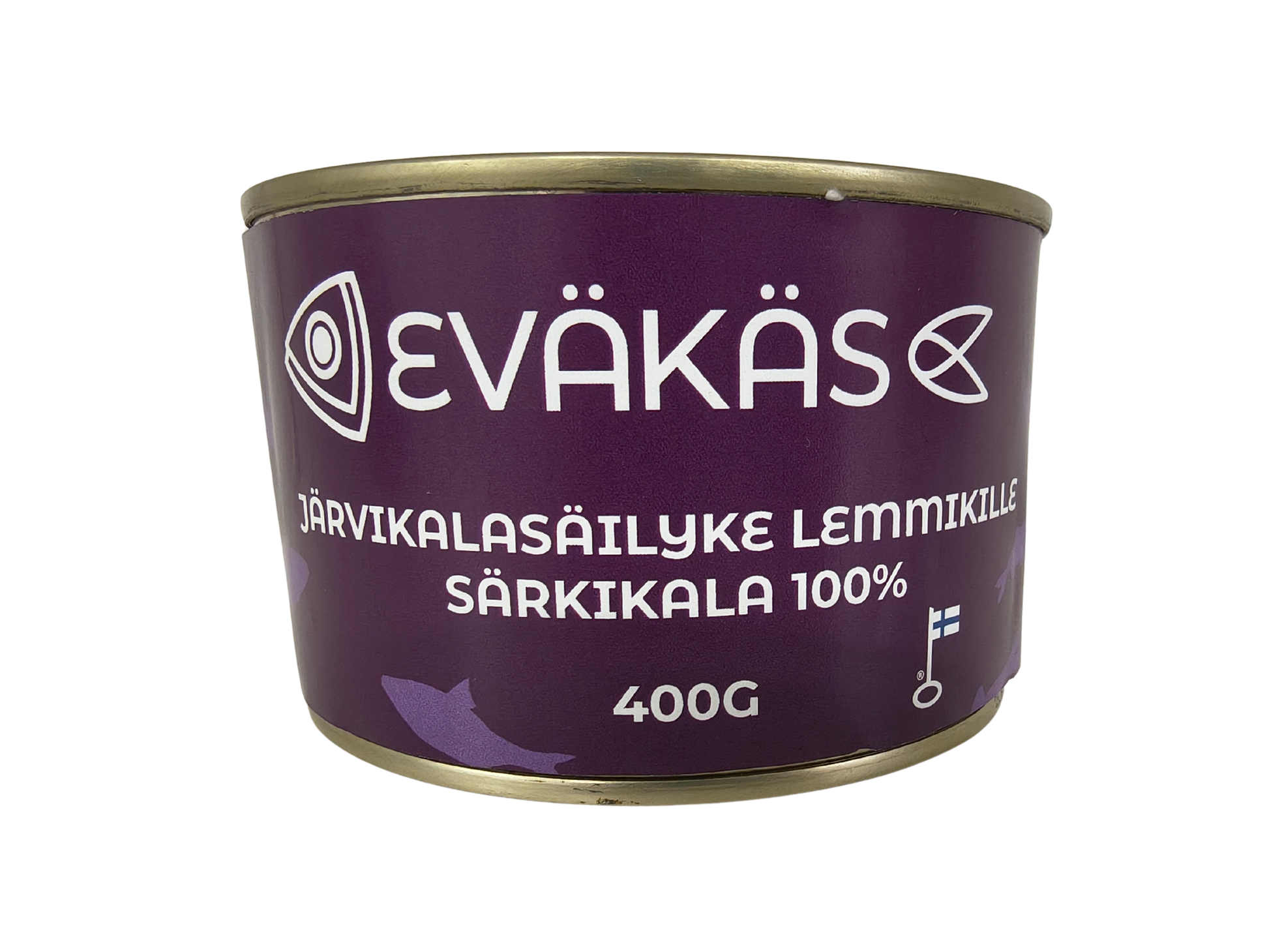 Suomalainen särkikalasäilyke. 400g purkki. Sopii hyvin lemmikin ruoan sekaan tai retkievääksi.