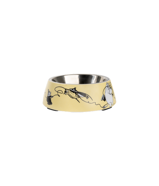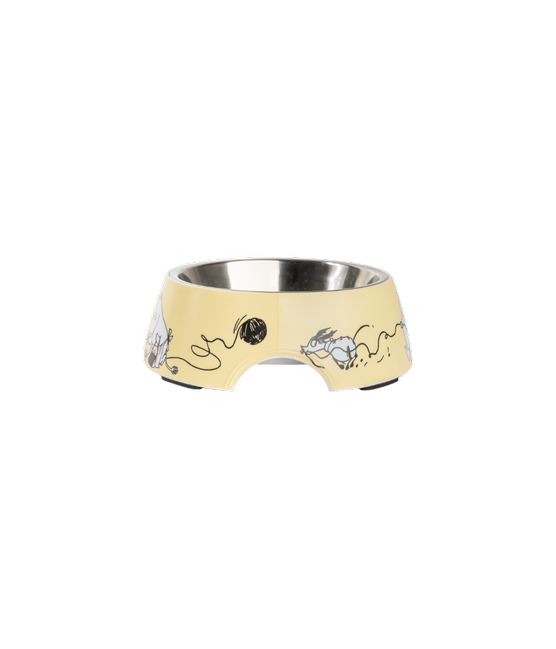 Kauniit Muumiaiheiset kulhot ovat kaksiosaisia. Irrotettava sisäosa on ruostumatonta terästä ja ulko-osa melamiinia. Molemmat ovat konepesun kestäviä. Pohjassa on kumipalat, jotka auttavat pitämään kulhon paikallaan.