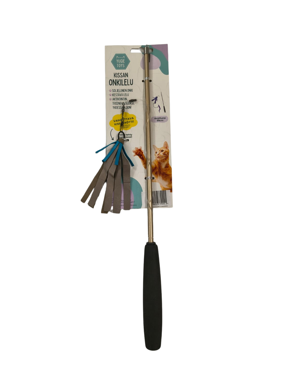 Tämä kissanlelu on ekologisempi ja pitkäikäisempi vaihtoehto perinteisille onkileluille, jotka päätyvät roskikseen syötin hajottua onkivavan päästä. Yugie Toys kissan ongessa on nimittäin napakka metallinen solki johon voit vaihtaa kissasyöttiä oman tai viiksekkään fiiliksen mukaan!